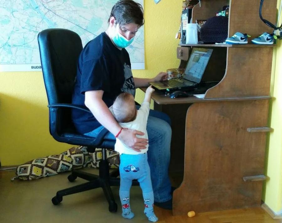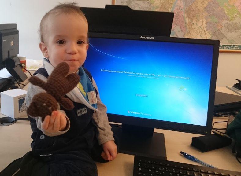 A következő nap folytatódott a pörgés. Amíg Virág fodrásznál volt, addig végre újra bevittem a kisfiam a munkahelyemre. Ezt már csináltam, és a jövőben is többször tervezem, mert reményeim szerint Mimm is örül neki. Amikor kölyök voltam, nagyon szerettem bejárni Mamához a fotólaborba, és Papához is a szerkesztőségekbe. Ez egészen varázslatos élmény egy gyereknek. Mindig lenyűgözött a képek szárítására használt gép működése, meg a furán érdekes illata. Az MTI híreit ontó telexgép előtt pedig nagyon szerettem feküdni és figyelni, ahogy végeláthatatlanul ömlik az infó. Egyszer pont lapzártakor voltam bent az egyik lapnál, és észrevettem, hogy mindenki tanácstalanul mörmög egy hírrel kapcsolatban. Én meg gyerekként elmondtam mindent, amit az ügyről tudni kell, mert történetesen nagyon érdekelt a téma. Viccelődtek is, hogy na, majd én is újságíró leszek. Ezt akkor kategorikusan elutasítottam, mert egészen az érettségiig biztos voltam benne, hogy óvóbácsi leszek. Amikor azonban a raccsolás miatt ez nem jött össze, megfordult minden, és elmentem az újságírósuliba. Így megy ez. Mindenestre Mimzi nagyon élvezte, hogy nem csak cuki kollégáim vannak, de mindenféle térképekkel vannak teleaggatva a falak. És bár biztosan nem érti még őket, de mivel otthon is van ilyen, már gyakorlott tapicskoló. Neki még egy kis képtaperolás is óriási öröm.