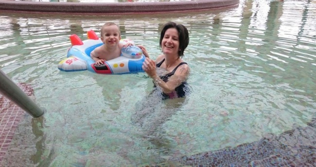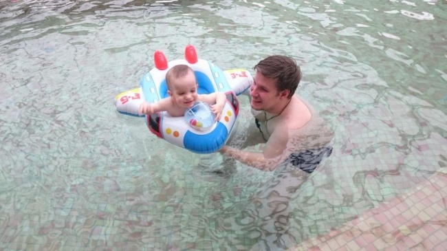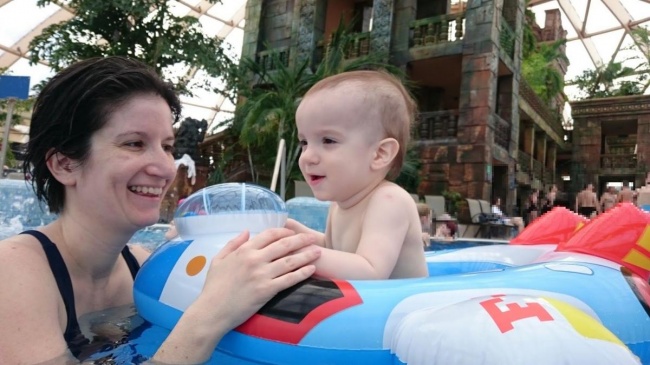 Mimó egyéves szülinapját családi nyaralással is megünnepeltük. Arra gondoltunk, hogy elég nagy már ahhoz, hogy elmenjünk pár napra kicsit zsibbadni. Mivel nincs autónk, úgy döntöttünk, csak nehézségeket okozna, ha messzire mennénk. Túl sok macera lett volna az utazással meg az átszállásokkal. Úgy döntöttünk ezért, hogy bőven elég nekünk, ha a Keszifornia másik végén lévő vízi élményhotelba megyünk.