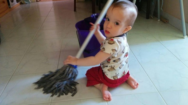 Egy nagyon érdekes új szokása is lett Mimmúrnak: állandóan fel akar mosni, amikor megtalálja az eszközöket. De nem ám csak maszatol, hanem rendesen végigmegy a kiszemelt területen, és a vödröt is szakszerűen használja. Ennek eléggé örülök, mert nálam már biztosan fogékonyabb a témára. Így Virunak nagy segítség lesz, ha nem veszti el a lelkesedését nagyobb korára, és jó alap is lesz a zsebpénzszerzésre.