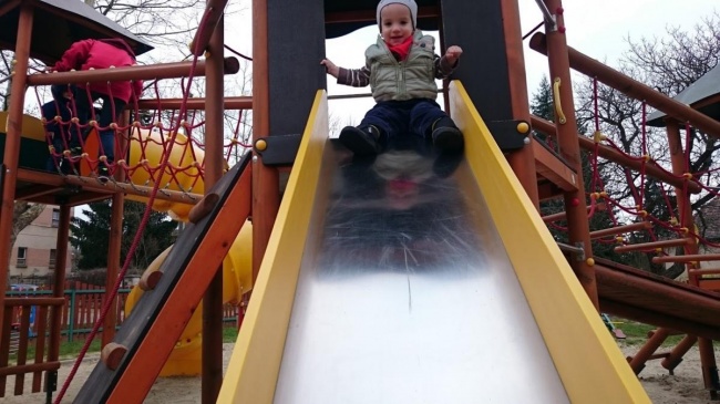 Nosztrán találtunk egy szupi játszóteret, ahol a gyerekek különféle csúszdákon vagánykodhattak. Elég menő látni, hogy Mimzi pár hét alatt mennyire megszerette a témát. Olyannyira, hogy kicsit sem fél, ha felültetjük rá, sőt, nekünk kell rohannunk, hogy lent el tudjuk kapni. Ha legközelebb megyünk vízividámparkba, már igazi mestere lesz a lecsúszásnak. Kopi pedig megállapította, hogy egy jegesmedve vagyok, és ehhez végig tartotta is magát. Érdekes ez, mert néhány évvel ezelőtt egy kolléganőm ugyanezt mondta rólam. Minek vitatkozzak velük?