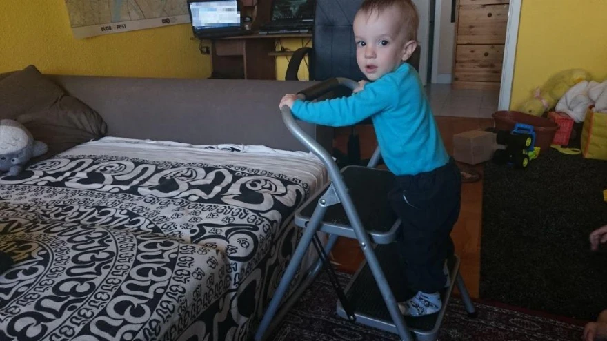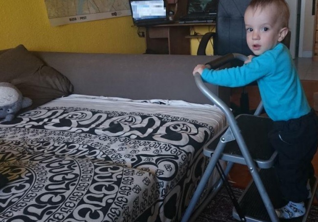 Mielőtt azonban győzött volna a nátha, Viru és Mimm sokat játszótereztek. Amikor viszont már itthon lábadoztak, a kisfiam nem hagyta magát, felfedezte a kislétrát, és azon mászókázott sokat. Azt vettem észre, hogy nagyon jól érzi magát a magasban. Ha felkapom, sikkant örömében, szeret a nyakamban ülni, és mászik fölfelé állandóan. Ez persze szerintem tök normális. Amíg nem ette meg a szervezetem az egyensúlyérzetem, én is nagyon szerettem letekinteni bárhonnan. A kölyökkorom egy részét Papa kertjében, a szederfán töltöttem. A ház mögött, a Duna partján nálunk is van egy izgi ártéri kiserdő, sok jó fával. A mamájával nagyon sokat járnak arra naponta. Ha nagyobb lesz, és úgy látja jónak, majdcsak megtalálja magának a mászási lehetőségeket.