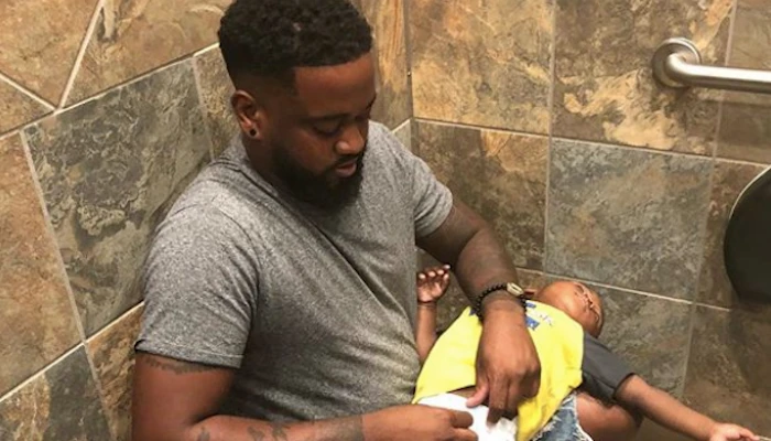 A fenti fotót egy apuka posztolta az Instagram oldalán, és a hozzátartozó leírásban felhívta a figyelmet arra, hogy tessék komolyan venni, mert ez egy valós és súlyos probléma. A posztban arra is kitért, hogy a pelenkázó asztal hiánya a férfi mellékhelyiségekben valami olyasmi üzenetet hordoz, mintha ők – az apukák- nem is léteznének, nem tennének semmit hozzá a gyerek gondozásához. A fotóról az is lejön, hogy a gyerkőc számára egyáltalán nem szokatlan a szituáció és természetellenes póz, hiszen nap, mint nap lezajlik ez a jelenet.