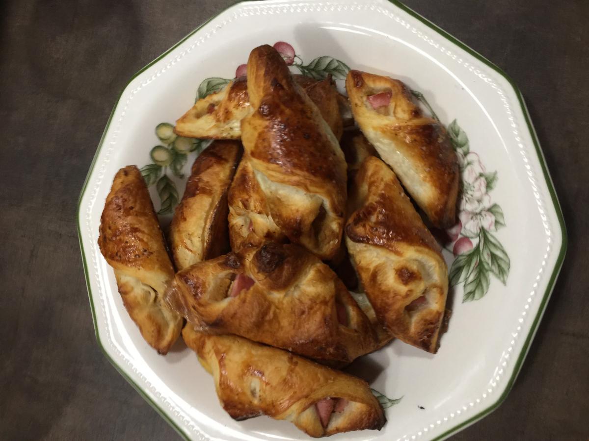 A sütőt légkeverésre 200 Celsiusfokra állítom és felfűtöm, amíg a kis kifliket elkészítem. Az élesztős leveles tésztát kicsomagolom és kb 5x5 –ös négyzetekre vágom. Nem kell vonalzó! Csináld, ahogy jól esik! Mindegyik közepére nyomsz egy kis mustárt és raksz egy darab virslit. Összecsomagolás után pedig sütőpapírral bélelt tepsibe helyezed. Minden kifliszerűséget
