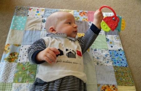 A múltkori naplóban pont leírtam, hogy a fölé lógatott játékot még nem fogja meg – Csongornak ennyi kellett, hogy leírják róla, és máris cáfolta. Olyan komolyan koncentrál, lassan nyúl, emeli a kezét, igazgatja az ujjait, és általában sikerül eltalálnia, hogy az adott tárgyat hogyan is kell megfogni. Ráadásul tegnap azzal lepett meg, hogy felvett egy játékot, ami a feje mellett volt a járókában, nem is láthatta jól, mégis felvette és vitte a szájához. Így kezdődik az igazi játék...