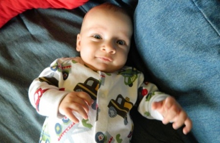 Csinos, csíkos, autós mintájú kisfiam éppen a forgást gyakorolja itt mellettem. Egyelőre sokkal nem jutott előbbre, de nagyon lelkes. Kíváncsi vagyok, ha megyünk majd megint tanácsadásra és oltásra, milyennek találja az izomzatát a doktornő, mert tornáztunk rendesen, de a babaúszási lehetőségek feltérképezéséig nem jutottam el, nemhogy magára az úszásra. A hasról hátra fordulás tökéletesen megy, a hátról oldalra olyan nagy lendülettel, hogy mindig azt hiszem, rögtön hasra kerül belőle. Hanyatt fekve, rugdalózva pedig bejárja a rendelkezésére álló teret, körbefordul, lemászik a leterített takaróról. Én nem látok semmi különbséget a mozgásában a bátyjaihoz képest.