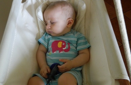 Az alvása nem olyan szörnyű ám, ahogy a fentiekből sejteni lehet, de tény, hogy zavarja a fogzás, volt, hogy csak fájdalomcsillapítóval tudott elaludni. Most volt komoly életmódváltásban is, azon dolgozott, hogy kialakítsa az új napirendjét, amiben három alvás helyett csak kettő szerepel. Azt hiszem, mostanra már készen áll ezzel a nagy munkával. Csak aztán hol sikerül könnyen elaludnia, hol nem, hol felriasztja legszebb álmából egy visító tesó, hol nem... Éjjel talán 3-4-5-ször kel, mikor hogy, nem is mindig tudom számolni, szopizik és alszik tovább szerencsére.