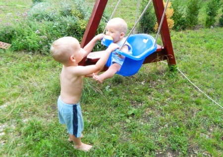 És hogy miért is írom le mindezt? Egyrészt mert én is gyakran találkozom vele, azért a fentiek kicsit zanzásítva vannak, én többször találkozom a jobbik felével: amikor elismerően néznek, amikor megdicsérik őket, vagy amikor valaki a saját gyerekeit említi az enyémeket látva. Másrészt mert megvan a hab a tortán: mától egy hétig négy fiam van. Bence pont illik a sorba, Marci és Regő közé, az orgonasípok most így néznek ki: 9 és fél, 6, 3 évesek és Csongor hét hónapos. Bence az unokatestvérük, a nővérem nagyobbik kisfia, nálunk nyaral ezen a héten. Ma volt az első négygyerekes napom, egyelőre nem volt benne sok program: elhoztuk Bencét, útközben bevásároltunk, itthon ebédeltünk, a délutáni alvás volt az első komolyabb akadály, de végül is legyűrtük, aztán néztünk olimpiát, amíg kinn nagyon meleg volt, utána medencés parti vette kezdetét, majd homokoztak, valamikor közben mindenki kapott egy adag fagyit, aztán a szokásos esti szertartás: vacsora, fürdés, mese. Holnap már kirándulni megyünk, lesz városnézés és mindenféle környékbeli látnivaló, igazi nyaralást tervezek sok élménnyel. Nem is tudom, örüljek vagy sajnáljam, hogy Bence annyira kirí az unokatesói közül: az egyetlen barna hajú, barna szemű a sok szőke, kék szemű között, és a bőre így augusztusban... hát, az enyémek is lebarnultak a téli hófehérségükhöz képest, de Bence szinte csokoládé közöttük. Pedig milyen jópofa lenne, ha őt is az enyémnek néznék erre-arra jártunkban, és elképednének, hogy úúúristen, négy fiú!
