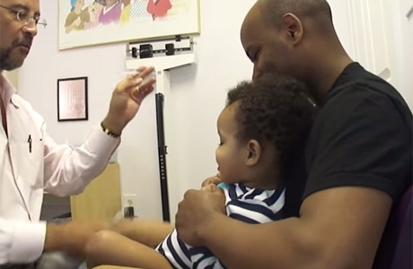 Legalábbis az alábbi videó erről tanúskodik. A szülő itt is tartja erősen a gyereket, de a gyerekorvos olyan felszabadultan bohóckodik a gyereknek, hogy szinte tökéletesen el tudja terelni a kicsi figyelmét arról, ami történik.