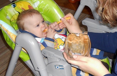 Azóta már vidáman falja a barackot, a krumplit és a sütőtököt, ma pedig a répával próbálkozunk. A délelőtti szoptatás előtt eszik, jelenleg 100-120 grammot egyszerre. Nagyon meg vagyok lepve, és persze örülök neki, hogy ilyen tempóban haladunk. Csanád hat héten keresztül próbálta az etetőszékben halottnak tettetni magát, ha meglátta a kanalat. De úgy látszik, a második gyerekkel ez is egyszerűbb.
