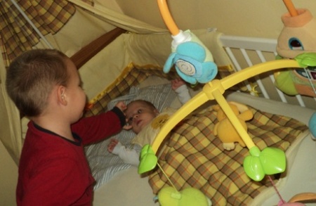 Még a hosszúhétvége előtt tökfesztivált rendeztek az oviban. Reggel Micót is magammal vittem, és részt vettünk a közös tökfaragáson, Csani örömére. Micóra körülbelül húsz darab, visítozó kiscsoportos vetette rá magát, hogy „juj, de cukiii kisbabaaa!!!”. Mindezt természetesen ezer decibelen ordítva, miközben elzárták előle a kilátást és a levegőt. Sok anya biztosan idegrohamot kapott volna, de én, rátalálva ősi ösztöneimre úgy döntöttem, a gyermekemre hagyatkozom. Látni fogom rajta, ha zavarja a túlzott érdeklődés, addig pedig engem miért zavarjon?