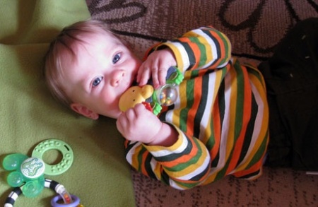 Micó egyre ügyesebben „kutyázik” négykézláb, néha már mászik is egy fél „lépést”, mielőtt előreborul, úgyhogy úgy érzem, bármelyik pillanatban átválthat a kúszó üzemmódról mászóra. A hozzátáplálásban is sokat haladtunk, mindenféle levesbe való zöldséget ismer, szereti a húst, a gyümölcsöket, a gabonaféléket. Ügyesen rágcsálja a két kis fogával a babakekszet, csócsálja a kifli csücsköt. Nyolc hónapos elmúlt, így lassan elkezdjük a tejtermékeket, és a nehézsúlyú állatok fogyasztását, mint a sertés vagy a marha.