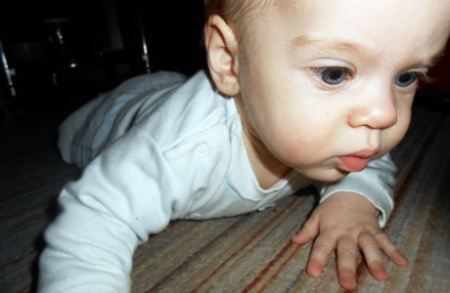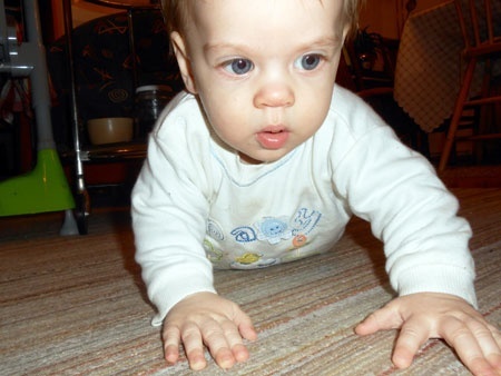 Micóka mozgásfejlődése fantasztikusan alakul, négykézláb hintáztatja magát, kutyázik, ahogy a védőnői szakzsargon mondaná, már kétszer is azt hittem, hogy megindul, de végül a mászás helyett tegnap kúszni kezdett. Természetesen, mint előtte már oly sok gyerek, a mobiltelefon irányába. Pörög, forog, bármit elér, és mindenhová el tud már jutni, ahová csak akar.