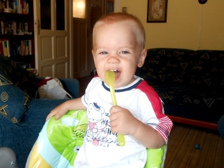 Aztán mikor Micó tegnap indulás előtt felmászott a billenthető nyugágyba, ahol hintáztattuk, és azt mondta tisztán és érthetően, hogy tiiiin-ta, akkor egyből beugrott, hogy holnap lesz éppen egy éve annak, hogy először hallottam meg azt az édes kis hangját. Ahogy felsírt, mintha kicsit csalódott, és szomorú lett volna, azt hiszem, tényleg nem volt kedve előbújni. Kitartóan kesergett. Ahogy rám tették, megvigasztaltam, később pedig szoptatni kezdtem.