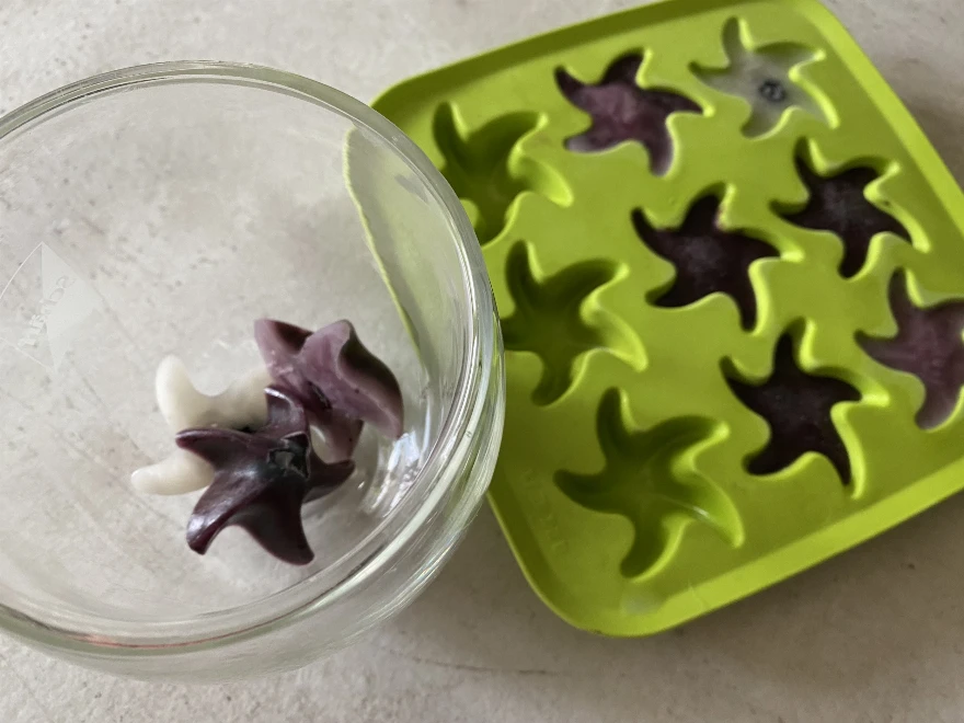 Így készítsd: turmixolj le smoothienak gyümölcsöt, hűts le teát, vagy vizezz fel egy pár kanál joghurtot/kefirt. Kanalazd át kis méretű jégkockatartóba. Tehetsz bele egy-egy szem gyömölcsöt, esetleg valamilyen aszalványt (pl. mazsolát) is, hogy még izgalmasabb legyen. Tedd a fagyasztóba, majd egyesével tálald a kicsiknek, akik úgy tudják elszopogatni, mint egy jégkockát, vagy mini jégkrémet!