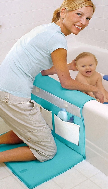 A fürdető-térdeplő: Nyilván ismerős az a térdben fellépő tompa, majd egyre erősebb nyomás, amit akkor érzel, mikor a nagykád mellett elhelyezkedve próbálod fürdetni a dedet. Ismételten egy igencsak egyszerű ötlet adhat lehetőséget ennek elkerülésére: a fürdőkád oldalára erősíthető, majd szükség esetén lenyitható fürdető-térdeplő, ami ráadásul még praktikus zsebekkel is fel van szerelve.
