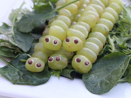 - Az egyik legegyszerűbb, de mégis látványos ötlet: készíts gyümölcskukacot! Szőlőből és málnából is roppant könnyen lekészíthető.