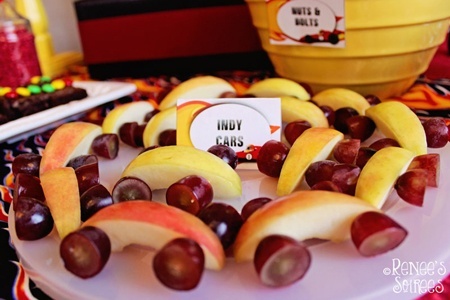 - Kisfiúknak készíthetünk almából és szőlőből versenyautókat. Még gurulnak is, nemcsak finomak…