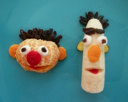 - Tuti a siker, ha a gyümölcsök pont úgy néznek ki, mint a gyerekek kedvencei a tévében! Bert és Ernie például kifejezetten ennivaló figurák.