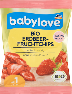 Akár útközben vagy otthon- a babylove bio eper gyümölcschips ideálisan finom nassolnivaló. A friss eperszemeket kíméletesen liofilizálták, így intenzív ízük tökéletesen megmaradt. A csomagoláson levő praktikus ragasztócsíknak köszönhetően a zacskó könnyen visszazárható, ezáltal a kiváló mínőségű bio eperszeletek ízletesek és ropogósak maradnak. (4 éves kortól) |