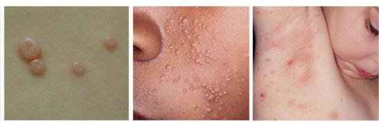 Atópiás gyermekek (fehér, száraz bőrű, szőke, kékszemű) között gyakori, ilyenkor nagyszámú jelenség látható az ekcémás bőrfelületeken, arcon, nyakon, a végtagok hajlataiban.