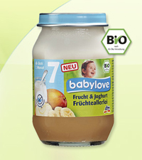 - babylove bio bébidesszert joghurttal és vegyes gyümölccsel, 7 hónapos kortól adható, 190 g, gyártási szám: D0390, lejárat: 08.02.12 (nap.hó.év)