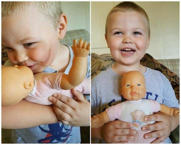„Ezt a babát vettük az idősebbik fiamnak, amikor várandós voltam a kisöccsével, hogy megtaníthassuk neki, hogy kell bánni egy csecsemővel. A projekt remekül sikerült!”