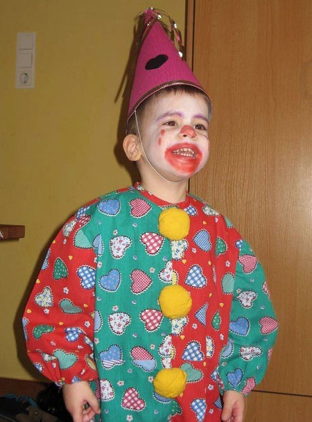 Ildikó kisfia hamisítatlan bohócjelmezt kapott anyukájától! Klasszikus ötlet, remek megvalósításban – a gyerek arca azt hiszem, mindent elárul!
