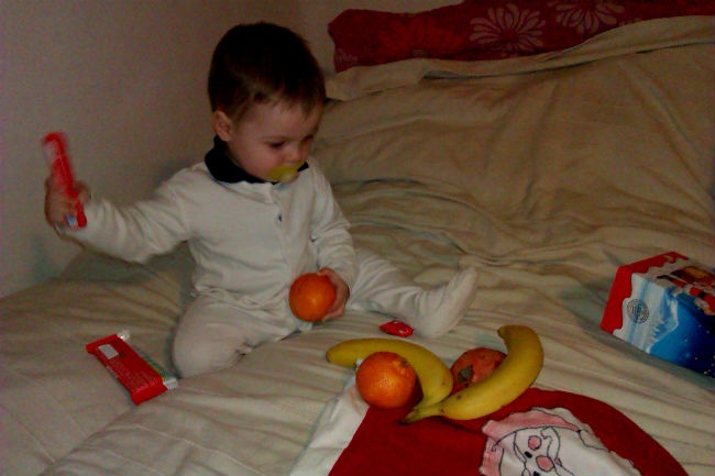 Mivel mama és papa is itthon van az év vége közeledtével, így próbálom minél halkabban hagyni Koppányt is, míg behozom az első reggelit. Újabban maximum fekvés előtt van egy 2,5 dl tápszer, majd reggel ébredéskor egy pohár zabtej. A zabtej nyert, próbáltunk mi rizstejet, mandulatejet, mindent, de mivel zabtej vagy tápszer után egy órán belül reggelizik, így nem tartom fontosnak a tápit.