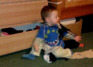 A lényeg, hogy Koppi egy kiegyensúlyozott, okos és gyönyörű, erőszakos pici fiúcska, aki mindenkire mély benyomást tesz. Többen szeretik, mint azt bárki gondolná, holott valljuk be, 2 évvel ezelőtt pont ezen a napon hagyott el a nemzője. Akkor nem gondoltam, hogy minden tud ennyivel jobb és ennyivel szebb lenni! Miközben ezeket a sorokat írom, Koppány éppen szétszereli az elkerített számítógépet. Hát igen, nem csak megtanul tökéletesen járni és futni 3 hónap alatt, hanem egy hete nincs az a magasság, amit le nem küzdene. Szekrény, polc, asztal, székmászás. A 3. zárat is megfejtette a gyerekkapun, így a konyhát is birtokba tudja már venni. Szombaton megvolt az első kiságyból szökése is. Mivel anya és mama még nem ért haza, így felháborodva Papának ment panaszkodni!