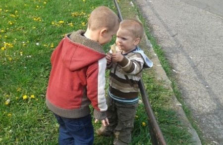 Csanival elég jól elvannak, bár mostanában látom Csanin, hogy élvezi Micó figyelmét, és nem mindig a legjobban reagál rá. Micó imádja a bátyját, és mindenben utánozza. MINDENBEN. Sajnos a rémes dolgokban is. Mint például az étel egymás tányérjába történő áthajigálása vagy a tárgyak fakanállal történő püfölése, éktelen visítás közben. Ha Csani elkezd körbe-körbe rohangálni, márpedig elkezd, akkor Micó sikongatva utána veti magát, csak szaladnak, szaladnak, mi már szédülünk, és ők még mindig nem unták meg, csak futnak kacagva-kergetőzve körbe-körbe.