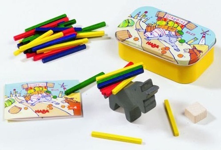 Óvodáskorú gyerekeknél már van annyira ügyes minden apró pracli, hogy a málhás szamár hátára akkor is fel tudja rakosgatni a rakományt, ha azok apróbb darabokból állnak. Ez a fémdobozos játék konkrétan egy nadrágzsebben elfér, bármikor életmentő lehet. Ára: 2 195.-