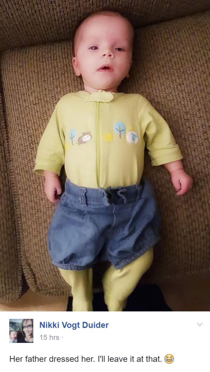 Szülőnek lenni sokszor nagyon nehéz. Nap mint nap nagyon sok dolgot tanulhatnak egymástól, és nemcsak a babák, hanem az anyukák és az apukák is. A babáknak leginkább csak annyi a problémájuk, hogy az apukájuk öltöztette fel őket. Természetesen tisztelet a kivételnek! És persze az anyukájuk nem birták magukban tartani az igen csak extrém helyzetet, megosztották a gyerekek "divatfotóját".