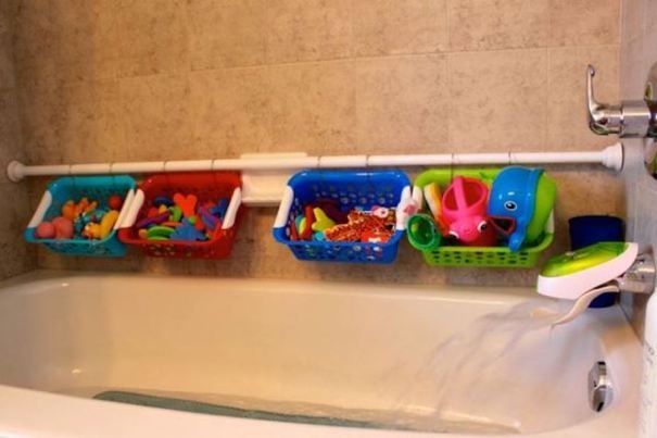 Tudom, szinte elkerülhetetlen, hogy az ember ne üljön rá egy gumikacsára, vagy más játékra a fürdőkádban, ha szökőévente egyszer megenged magának egy relaxáló esti merülést. Nos, az ilyen fürdőszobai balesetek megelőzésére, és nyilván a rend érdekében hasznos lehet ez a kis tároló, ami egy virágakasztóból lett kialakítva. Újrahasznosítás rulez! |