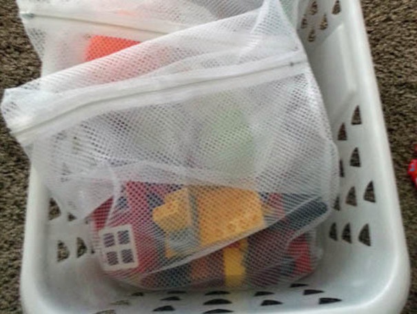Ez az anyuka/apuka az apróbb játékokat, építőkockákat nemes egyszerűséggel nem másban tartja, mint kisebb mosózsákokban. Így talán könnyebb őket szelektálni is, de tisztítani mindenképp. Hiszen ezekben a bezipzározható kis tasakokban csak be kell tenni a játékokat a mosógépbe és elindítani egy alacsony hőfokú, lassú centrifugálású programot. Így biztosan a zsákban maradnak a kincsek, amíg alaposan megtisztulnak. |