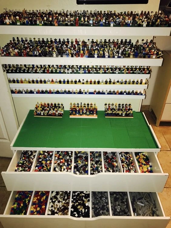 Ezt a képet azért tettem be, mert egészen ámulatba ejtő, hogy egyes szülők milyen magas szinten művelik a rendszerezést. Ez a lego-tároló szekrény egyben játszós asztalka is, aminek a fiókjait pikk-pakk el lehet tüntetni, hogy odaülhessenek elé a lurkók. |