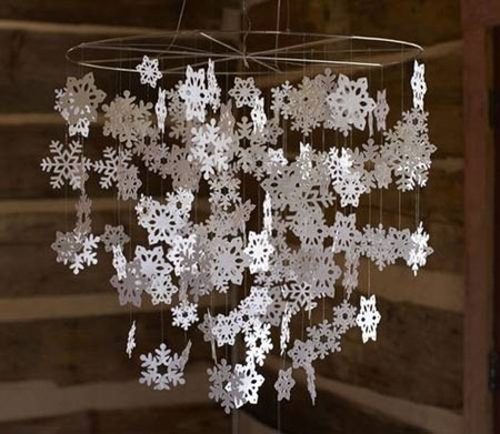 Az első dekorációt bárhol akasztjuk is fel a lakásban, biztosan ünnepi hangulatot fog árasztani. Az egyszerű papírból készült hópelyheket akár a kisebb gyerekek segítségével is kivághatjuk – segítségképpen itt találhatók a sablonok is -, aztán cérnára fűzve kössük őket a keretre.