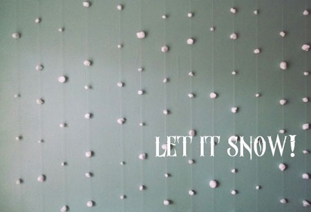 Nem nehezebb a vattapamacsokból elkészíthető hópehely-füzér sem, ami jól mutat akár egy festett fal előtt, akár az ablakokba felaggatva. Ha nem egyforma méretűek a vattalabdacsok, még élethűbb lesz a hatás. Naná, hogy kisgyerekekkel is elkezdhető. Alternatív formája a pattogatott kukoricából fűzött girland, csak készüljünk kb. dupla adaggal, mert munka közben biztos, hogy az alapanyag egy része szublimálni fog.