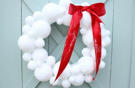 És végül, ne feledkezzünk meg a bejárati ajtóról sem! Ehhez a bájos koszorúhoz nem kell más, mint egy hungarocell koszorúalap, különböző méretű hungarocell golyók, decoupage-ragasztó és némi műhó. Az elkészítése annyira egyszerű, hogy nem is fordítanám le, kattintsatok ide, lépésről-lépésre bemutatják a teendőket. És ne felejtsétek el bevonni a gyerekeket az elkészítésébe!