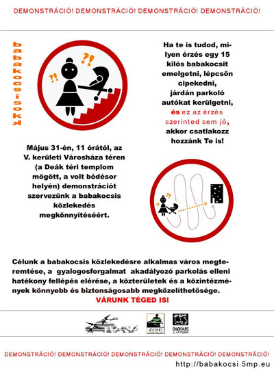 Civil kezdeményezésre babakocsis demonstrációt szerveznek 2007. május 31-én délelőtt 10 óra 30 perctől 12 óráig az V. kerületi Városháza téren (a Károly körút mentén, a volt bódésor helyén). A megmozdulásra a TAVASZ (Tegyünk a Világért! – Anyák Szövetsége), a Zöfi (Zöld Fiatalok) és az Ökotárs Alapítvány támogatásával kerül sor.