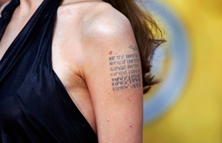 De nyilván rengeteg nemzetközi példát is tudnánk mutatni. A gyerekekről szóló tetoválás egyik leghíresebb képviselője talán Angelina Jolie, aki a fogadott és vér szerinti gyerekei születési helyének koordinátáját és dátumát tetováltatta magára – amit hetedikként férje, Brad Pitt adataival is kiegészített.