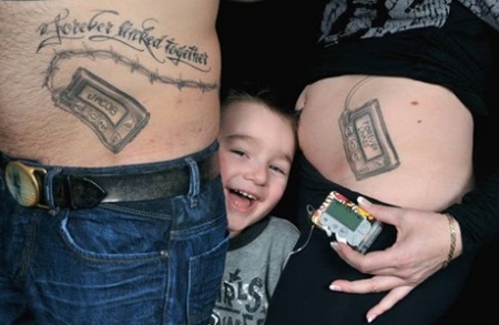 A tetoválás azonban nemcsak arra jó, hogy örök emléket jelentsen. Segíthet is a gyereknek és erősítheti a családtagok közötti kötelékeket. Philippe Aumond és Camille Boivin például azután tetováltattak magukra, miután kisfiúknál, Jacobnál 3 és fél évesen 1. típusú cukorbetegséget diagnosztizáltak. A kisfiú először inzulininjekciókat kapott, majd később egy olyan inzulinpumpát, amit a hét minden napján, minden órában viselnie kell. És bár Jacob örült a pumpának, a többi gyerektől különbözőnek érezte magát. Ezért szülei magukra tetováltatták a gyerek egészségét jelentő készüléket, azzal az üzenettel, hogy ők örökre össze is vannak kötve.