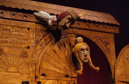 A székely menyecske meg az ördög a FABÓK MANCSI BÁBSZÍNHÁZA előadása. Minden szereplő más típusú báb, illetve néhányat (királynő, boszorka) Fabók Mariann színésznő élőben személyesít meg. Bravúros, ahogy a szerepeket váltja, ahogy a Halál és a királyfi közötti beszélgetést megoldja, ahogy a paravánt használja, ahogy a néző szeme láttára arcának és hangjának megváltoztatásával két különböző alak párbeszédét eljátssza. Igazi vásári báboshoz illően kommunikál a közönséggel.