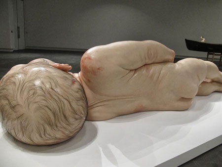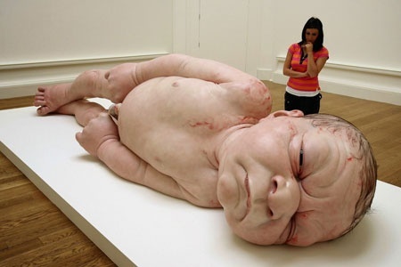 A Londonban élő ausztrál szobrász, Ron Mueck, miután megunta a modellkészítést és azt, hogy gyerekeknek szóló tévéműsorokhoz és filmekhez bábokat készítsen, 1996-ban úgy döntött, valami egészen új dologba vág bele. Művészetét innentől kezdve gyantával, üvegszállal, szilikonnal és még számtalan más alapanyaggal kezdte kifejezni, méghozzá egészen brutális módon életszerű szobrok készítésével.