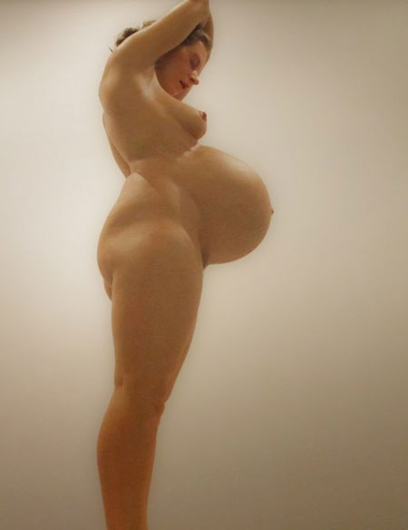 Például egészen meglepő ebből a perspektívából egy élethű újszülött még vértől és magzatvíztől ragacsos testére és a külvilágra vezető út viszontagságaitól gyűrött, öregemberes arcára ránézni, ahogy a világra érkezés utáni első percek is sokkal feszítettebbnek tűnnek kicsiben. De nézzétek meg a vajúdást óriásira növelve, vagy a gyermekét hordozó és bevásárlást cipelő anya életnagyságúnál kicsit kisebb elgyötörtségét.