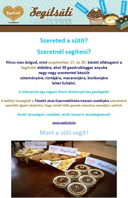 Várnak minden segítő szándékú embert a Segítsüti akció licitjeire és utána ajándéktárgyaira, hogy a süti most is sokat segíthessen!