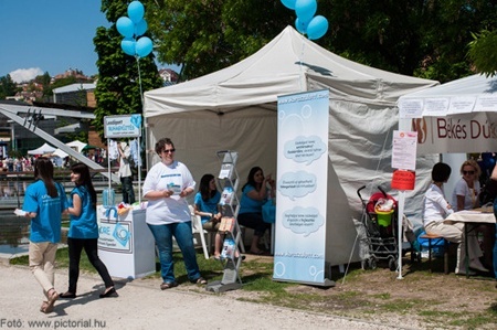 Persze, nem feledkeztünk el az anyukákról sem, hiszen ez a nap mégiscsak az övék volt! Az Avon sátránál például csodás sminket kaptak, a Békés Dúlakör, a KORE (Koraszülöttekért Közhasznú Egyesület) és a Kölöknet sátránál pedig tanácsot kérhettek a szakértőktől. A Humancellnél a kismamák kaphattak bővebb információt a köldökzsinórvér felhasználásáról és az őssejt-megőrzésről, míg a Kismama-ügyintéző.hu asztalánál már előre bebiztosíthatták maguknak a nyugodt, ügyintézésektől mentes első heteket. Aki még szülés előtt állt, az a Regisztrációs sátornál kézbe vehette, vagy meg is vásárolhatta a Tea Kiadó első könyvét, melynek címe Babázz lazán!. Arról is gondoskodtunk, hogy a picikkel érkező anyukáknak ne kelljen pelenkázótáskát cipelniük: a Müller Pelenkázósátrában az ott biztosított pelenkák, krémek és törlőkendők segítségével tehették tisztába a babát.