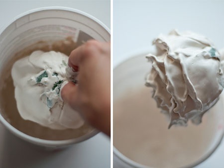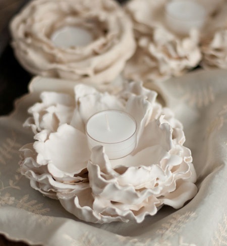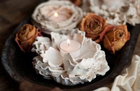 Ehhez nem is kell mást tenni, mint a művirágokat gipszbe mártani, kicsit széthajtani a még nedves szirmokat. Majd hagyjuk, hogy a gipsz megkössön, a közepébe állítunk egy mécsest és már kész is!