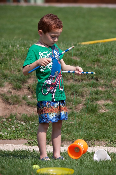 A nagyobb gyerkőcök kipróbálhatták magukat a Cirkusziskolában is - a Vidámság.com területén tényleg fülig értek a szájak, kivéve, amikor inkább csücsörödtek és kicsit nyelvkilógtak a nagy koncentrálástól és igyekezettől. Még a - nem is annyira gyereklelkű - felnőttek is kipróbálták a gólyalábakat, ördögbotokat és egyensúlyozást megkívánó eszközöket.