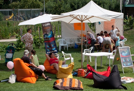 Népszerű volt az Ovko Bababüfé is a Regisztrációs sátor mellett, baba itt éhen nem maradt. És babapopsi nedvesen sem, hála a Müller Pelenkázósátor - és a Minimanó bútorai - nyújtotta pelenkázási lehetőségnek! Aki pedig megfáradt, az megpihenhetett a Függőágy.hu elképesztően kényelmes, színes függőágyaiban vagy a Flashbag hívogató és marasztaló babzsákjain, vagy részt vehetett egy lazító jógafoglalkozáson a Fügefa Virága Jógastúdió oktatója, Vértessy Flóra vezetésével.