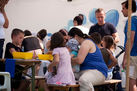 Már a program kezdete után sokan megjelentetek, a Gárembucka, a Lurkó Kitáncoló és a Ringató foglalkozásokat együtt élvezték a gyerekek és a felnőttek. Gyorsan megtelt a Gabi és a Milumil sátra is, és persze, sokakat vonzott - főleg a fiús családokat - a csillogó piros, csodás tűzoltóautó is a Szomjoltóság és a Gyújtóforrás standjai közelében.